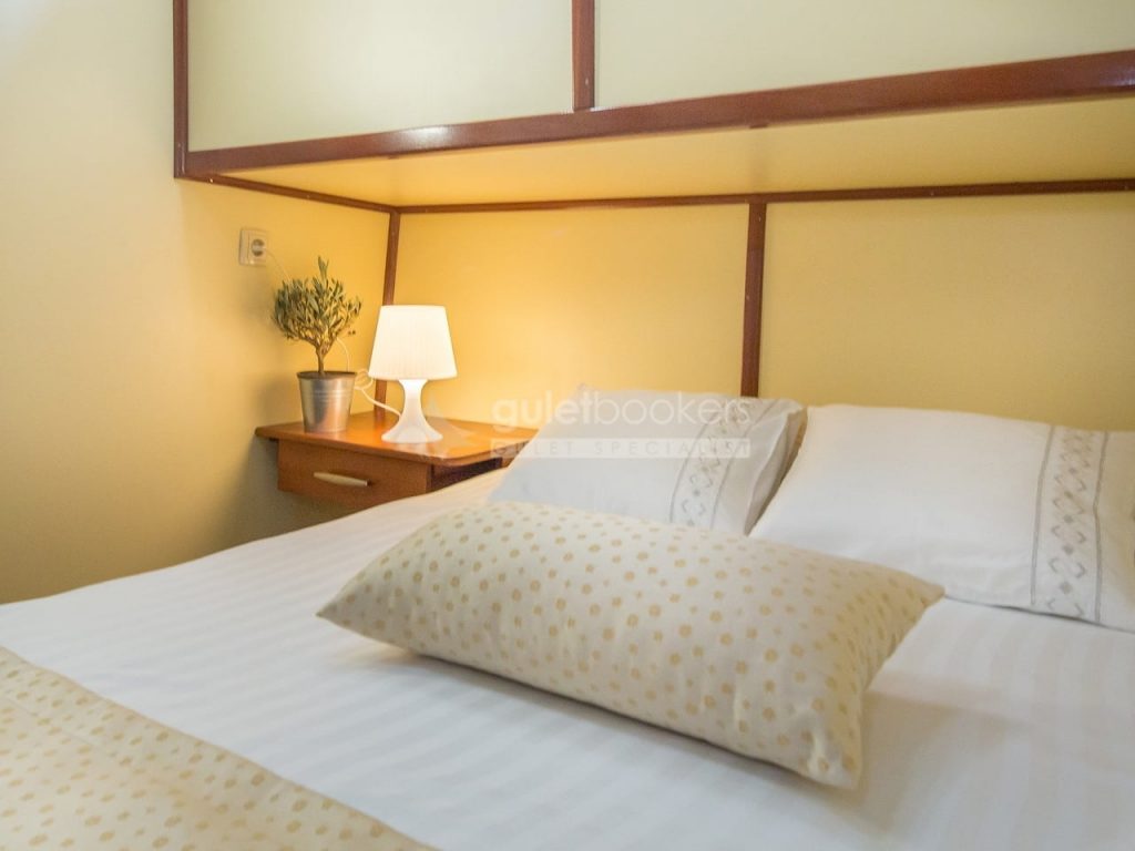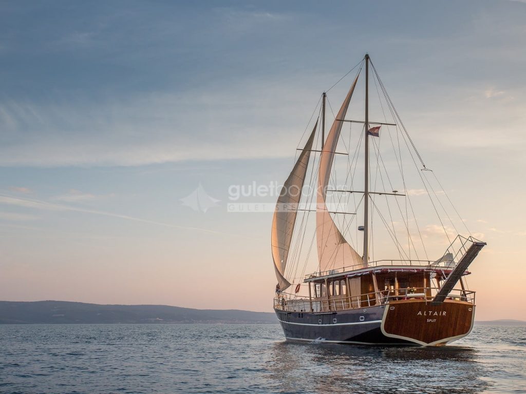 Le goélette Altair dispose de six cabines attenantes (deux twins et quatre doubles) et d’une longueur de 24,5 mètres (80 pieds), il peut accueillir confortablement douze invités grâce à sa grande largeur. Ses cabines chics et minimalistes combinent une salle de bain moderne et impeccable avec une atmosphère confortable et reposante.