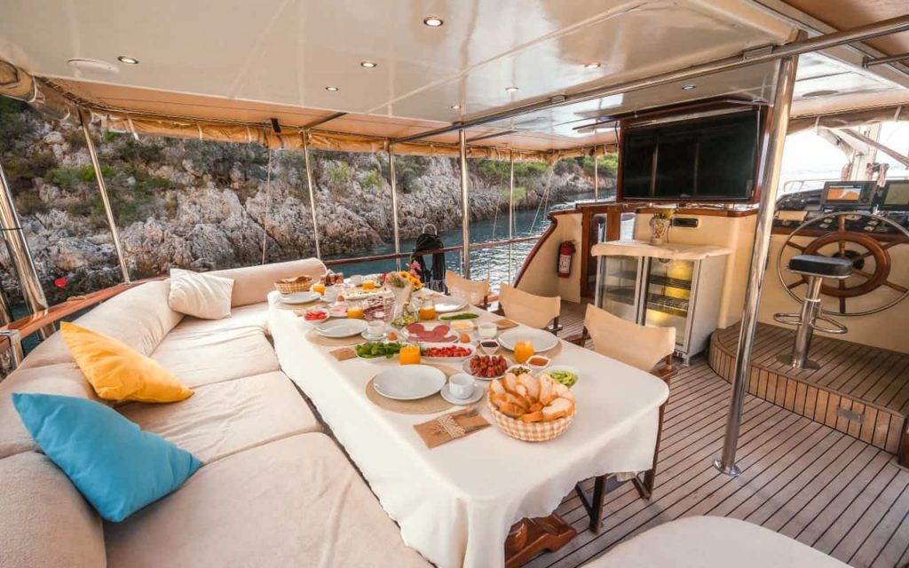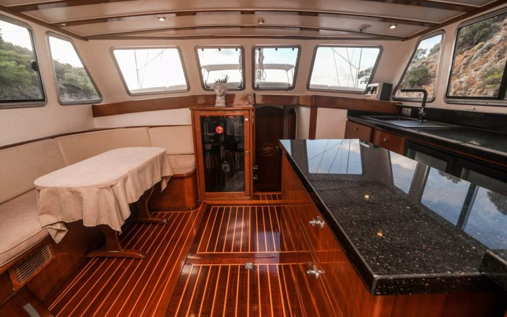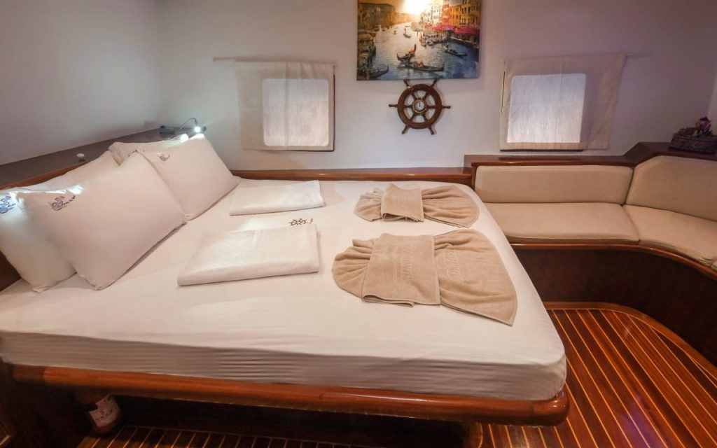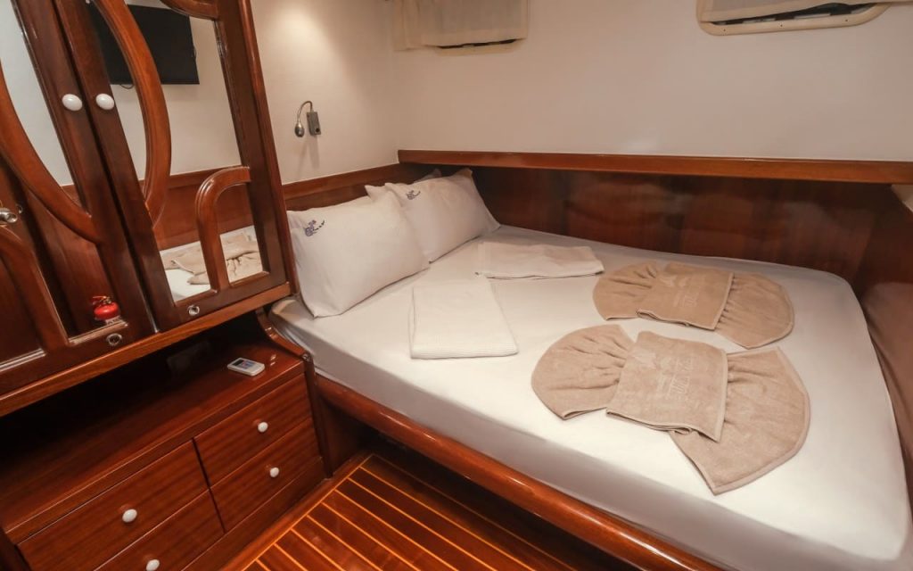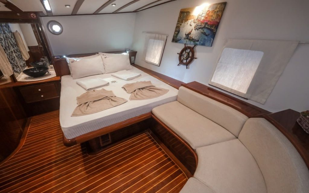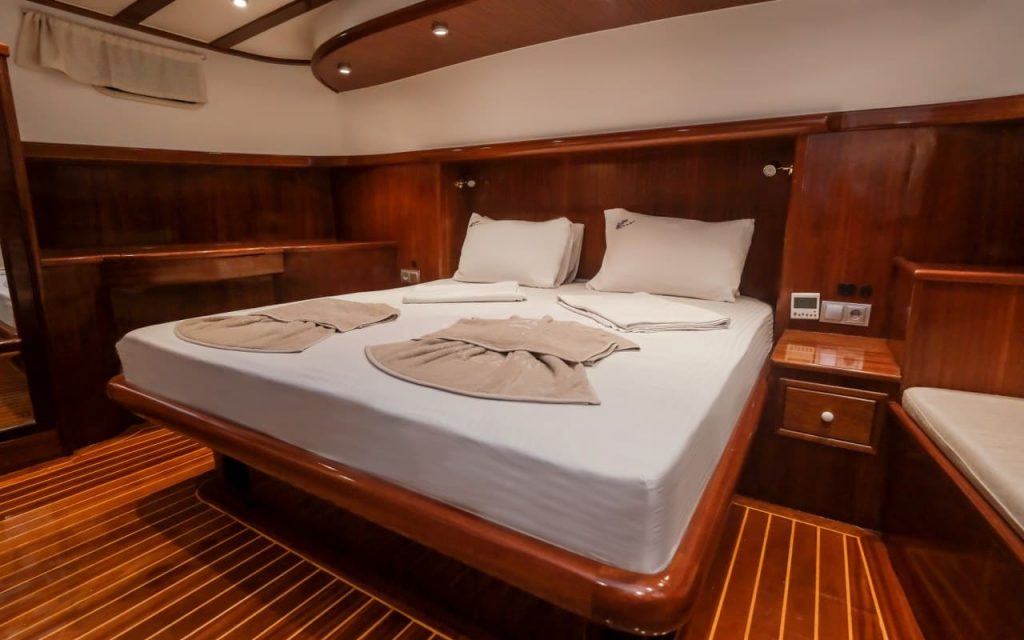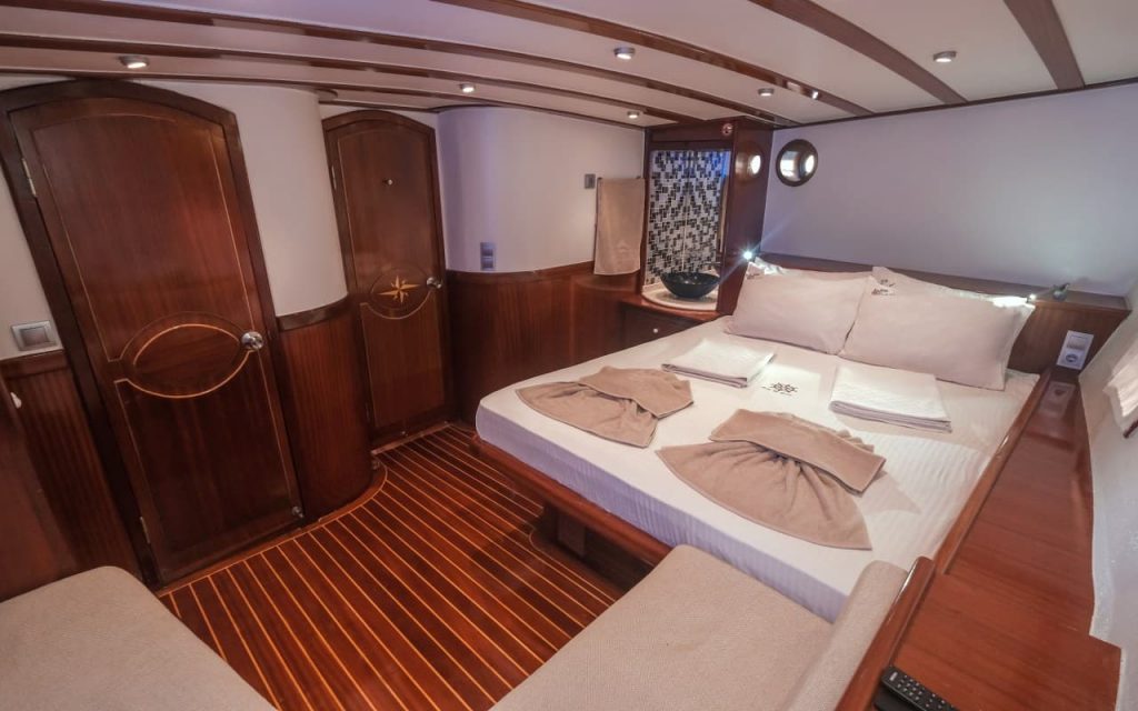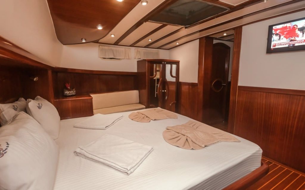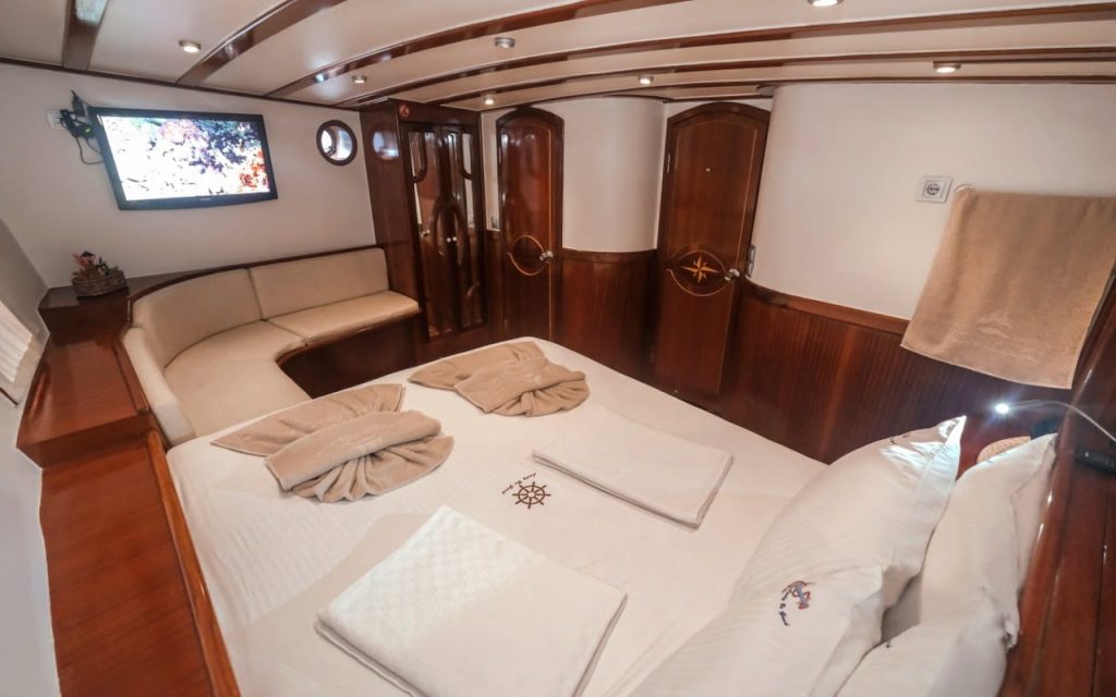 La goélette est équipée d’installations modernes telles que l’air conditionné, la télévision, le wifi, le paddleboard, le canoë, les jouets aquatiques, le groupe électrogène et bien d’autres choses encore, pour vous garantir des vacances agréables et sans souci lors du voyage bleu. Chaque détail a été soigneusement pris en compte pour améliorer votre expérience lors de votre voyage sur les mers turquoises.