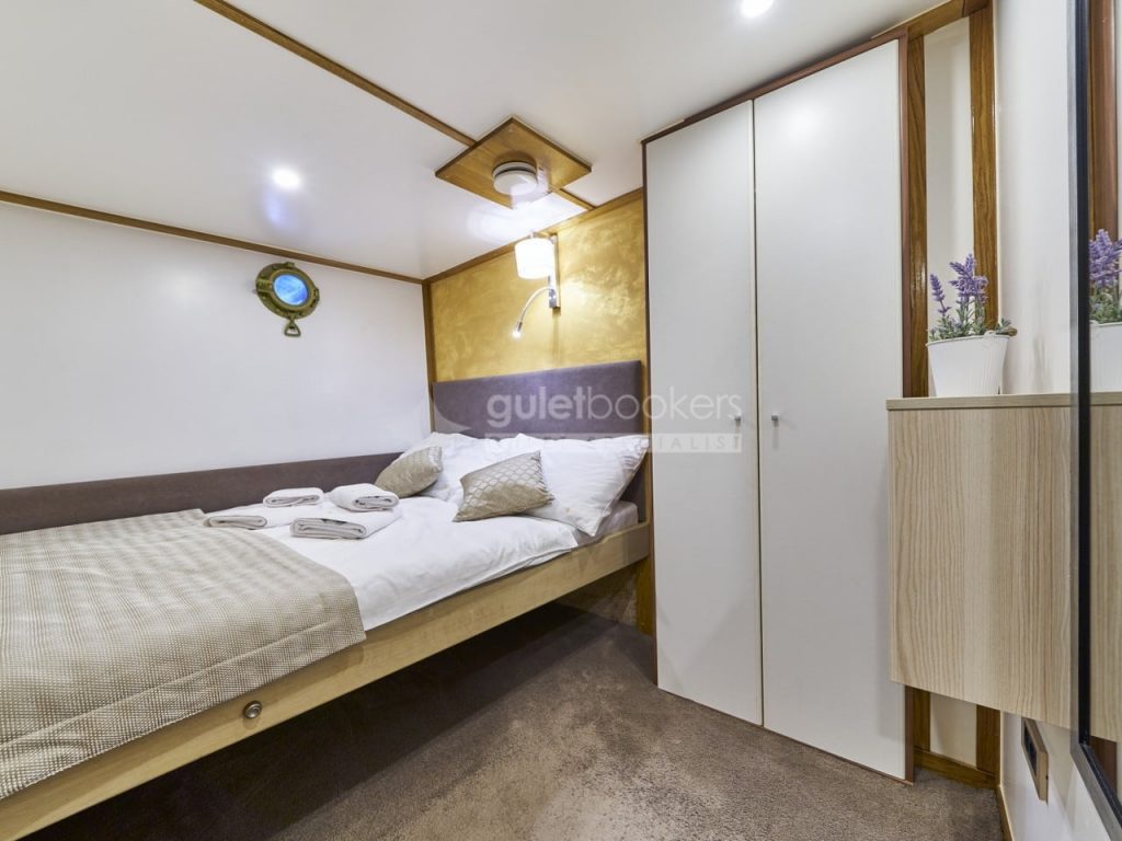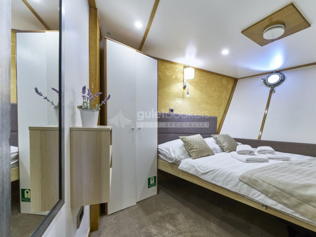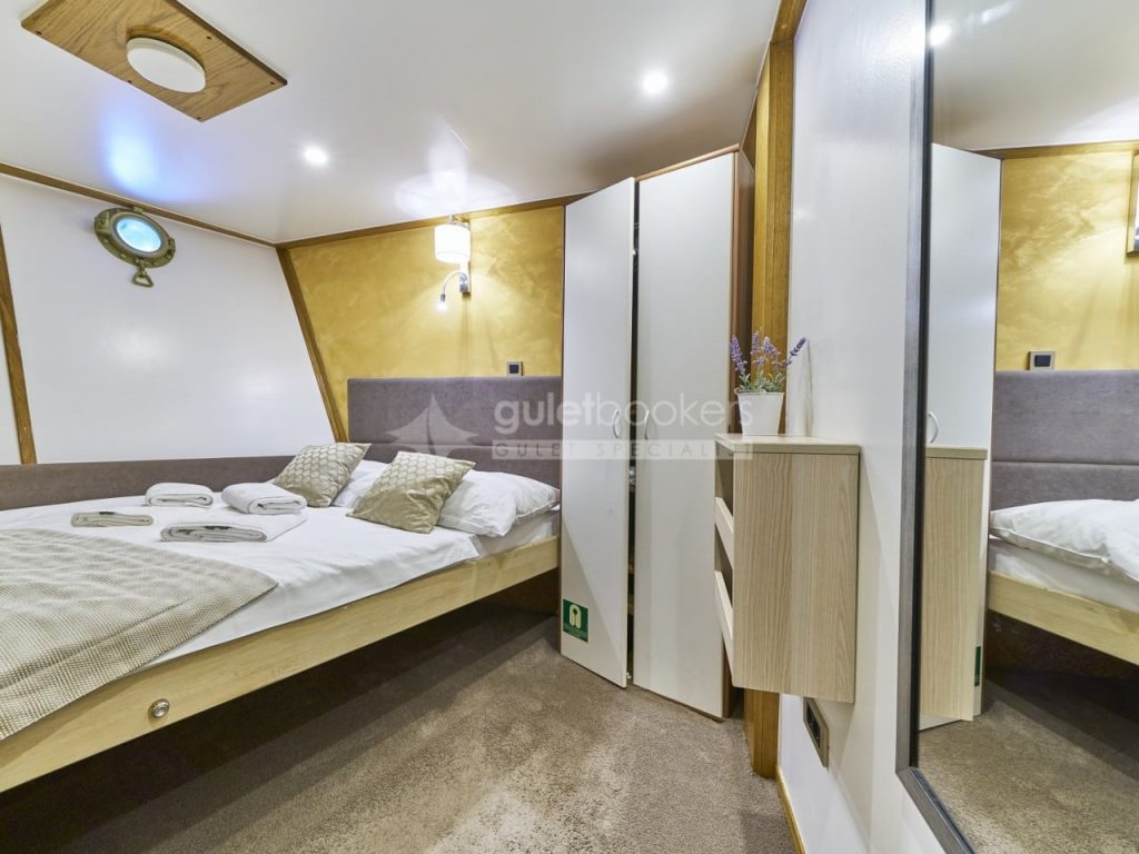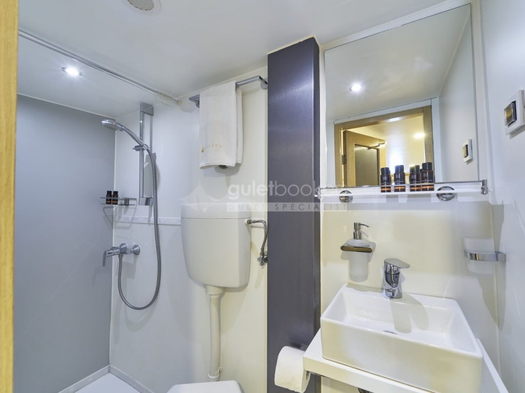 Pouvant accueillir jusqu’à 16 invités dans 8 cabines doubles, chacune équipée de salles de bains privatives et de la climatisation, Romanca offre un cadre spacieux et opulent pour des vacances à la voile remarquables. L’intérieur est un chef-d’œuvre de design, avec un salon lumineux comprenant un coin repas et un bar, créant une atmosphère accueillante pour la détente et les échanges.