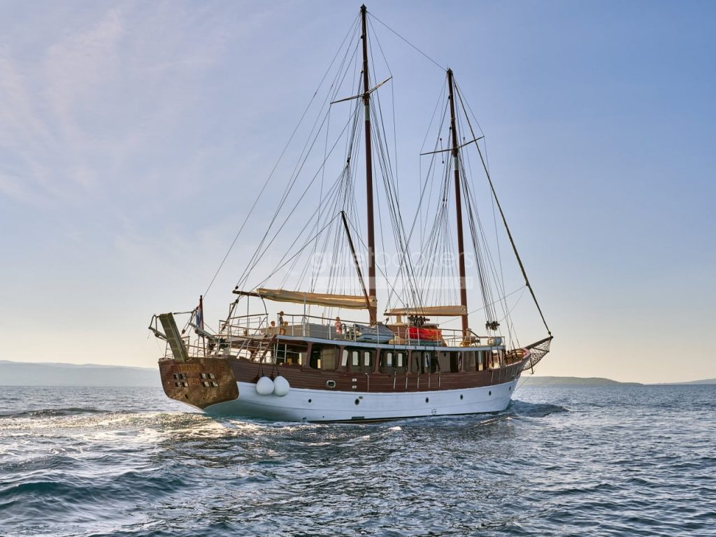 Le luxueux voilier à moteur Romanca, s’étendant sur 28,4 mètres, allie harmonieusement charme traditionnel et élégance contemporaine, offrant une expérience de vacances exceptionnelle dans l’Adriatique. Initialement construit en 1998 et minutieusement rénové en 2014, Romanca arbore un design intemporel et des équipements modernes, garantissant le confort et la satisfaction de ses invités.